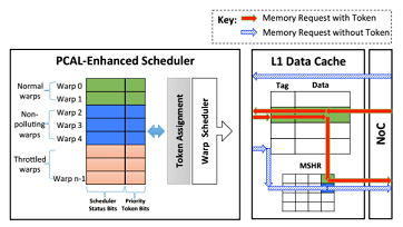 GPUs employ massive multithreading and fast context switching to provide high throughput and hide memory latency. Multithreading can Increase contention for various system resources, however, that may result In suboptimal utilization of shared resources. Previous research has proposed variants of throttling thread-level parallelism to reduce cache contention and improve performance. Throttling approaches can, however, lead to under-utilizing thread contexts, on-chip interconnect, and off-chip memory bandwidth. This paper proposes to tightly couple the thread scheduling mechanism with the cache management algorithms such that GPU cache pollution is minimized while off-chip memory throughput is enhanced. We propose priority-based cache allocation (PCAL) that provides preferential cache capacity to a subset of high-priority threads while simultaneously allowing lower priority threads to execute without contending for the cache. By tuning thread-level parallelism while both optimizing caching efficiency as well as other shared resource usage, PCAL builds upon previous thread throttling approaches, improving overall performance by an average 17% with maximum 51%.