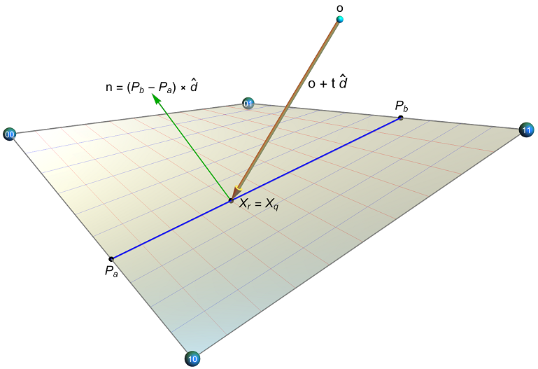 We find intersections between a ray and a nonplanar bilinear patch using simple geometrical constructs. The new algorithm improves the state of the art performance by over 6X and is faster than approximating a patch with two triangles.