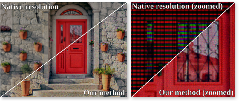 Emerging fields of mixed reality and electronic sports necessitate greater spatial and temporal resolutions in displays. We introduce a novel scanning display method that enhances spatiotemporal qualities of displays. Specifically, we demonstrate that scanning multiple image patches that are representing basis functions of each block in a target image can help to synthesize spatiotemporally enhanced visuals. To discover the right image patches, we introduce an optimization framework tailored to our hardware. In our method, spatiotemporally enhanced visuals are synthesized using an optical scanner scanning image patches from an image generator illuminated by a locally addressable backlight. As a validation of our method, we demonstrate a prototype using commodity equipment. Our method improves pixel fill factor to hundred percent and enhances spatial resolution of a display up to four times. An inherent constrain regarding to spatiotemporal qualities of displays could be solved using our method.