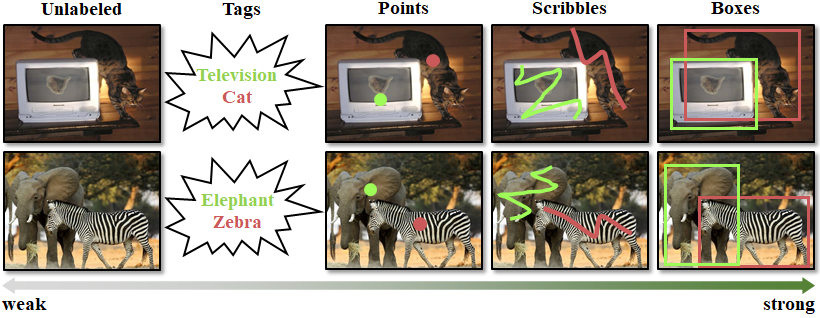 Existing work on object detection often relies on a single form of annotation: the model is trained using either accurate yet costly bounding boxes or cheaper but less expressive image-level tags. However, real-world annotations are often diverse in form, which challenges these existing works. In this paper, we present UFO2, a unified object detection framework that can handle different forms of supervision simultaneously. Specifically, UFO2 incorporates strong supervision (e.g., boxes), various forms of partial supervision (e.g., class tags, points, and scribbles), and unlabeled data. Through rigorous evaluations, we demonstrate that each form of label can be utilized to either train a model from scratch or to further improve a pre-trained model. We also use UFO2 to investigate budget-aware omni-supervised learning, i.e., various annotation policies are studied under a fixed annotation budget: we show that competitive performance needs no strong labels for all data. Finally, we demonstrate the generalization of UFO2, detecting more than 1,000 different objects without bounding box annotations.