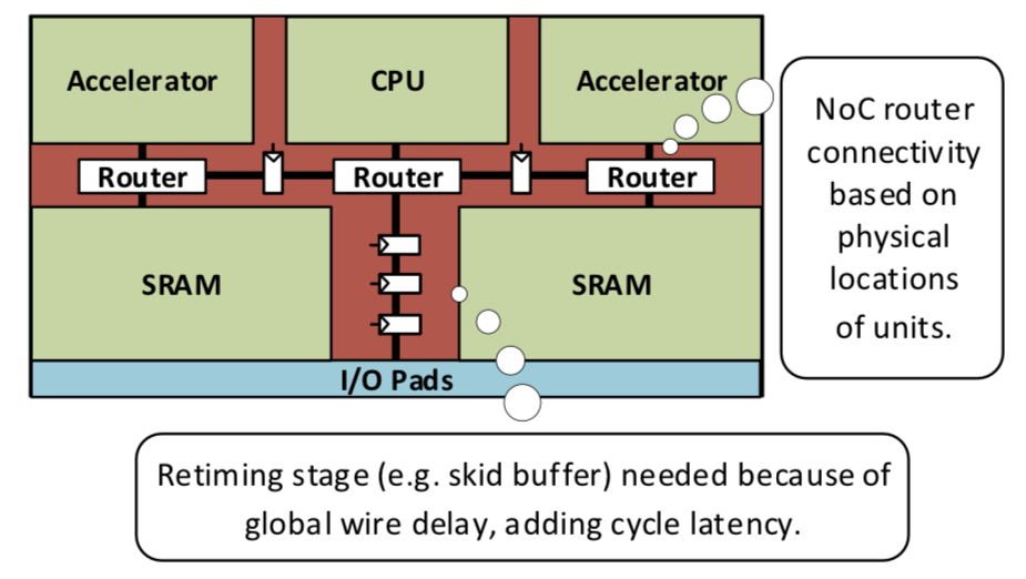 High-level synthesis (HLS) has recently been used to improve design productivity for many units in today’s complex SoCs. HLS tools and flows improve chip design productivity by enabling prototyping and automated implementation of RTL from a single codebase. Although interconnect design is a critical part of today’s highly complex SoCs, HLS has not historically been used for SoC-level interconnect. One reason for this is that interconnect architecture and physical floorplan are tightly coupled, and can be difficult to estimate early in the design process.