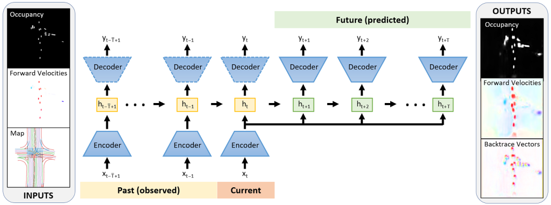 Predicting the future motion of traffic agents is crucial for safe and efficient autonomous driving. To this end, we present PredictionNet, a deep neural network (DNN) that predicts the motion of all surrounding traffic agents together with the ego-vehicle's motion. All predictions are probabilistic and are represented in a simple top-down rasterization that allows an arbitrary number of agents. Conditioned on a multi-layer map with lane information, the network outputs future positions, velocities, and backtrace vectors jointly for all agents including the ego-vehicle in a single pass. Trajectories are then extracted from the output. The network can be used to simulate realistic traffic, and it produces competitive results on popular benchmarks. More importantly, it has been used to successfully control a real-world vehicle for hundreds of kilometers, by combining it with a motion planning/control subsystem. The network runs faster than real-time on an embedded GPU, and the system shows good generalization (across sensory modalities and locations) due to the choice of input representation. Furthermore, we demonstrate that by extending the DNN with reinforcement learning (RL), it can better handle rare or unsafe events like aggressive maneuvers and crashes.