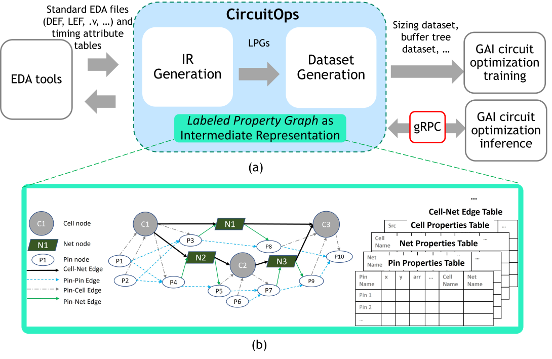 An innovative ML infrastructure named CircuitOps is developed to streamline dataset generation and model inference for various generative AI (GAI)-based circuit optimization tasks. Addressing the challenges of the absence of a shared Intermediate Representation (IR), steep EDA learning curves, and AI-unfriendly data structures, we propose solutions that empower efficient data handling. Our contributions encompass the following: (1) labeled property graphs (LPGs) as IR for flexible netlist representation and efficient parallel processing; (2) tools-agnostic IR generation from standard EDA files; (3) customizable dataset generation facilitated through AI-friendly LPGs; (4) gRPC-based inference deployment. Compared with using Tcl interfaces of EDA design tools, CircuitOps achieves a significant 99x dataset generation speedup and 75K nets per second transfer throughput, validating its effectiveness in optimizing GAI tasks.