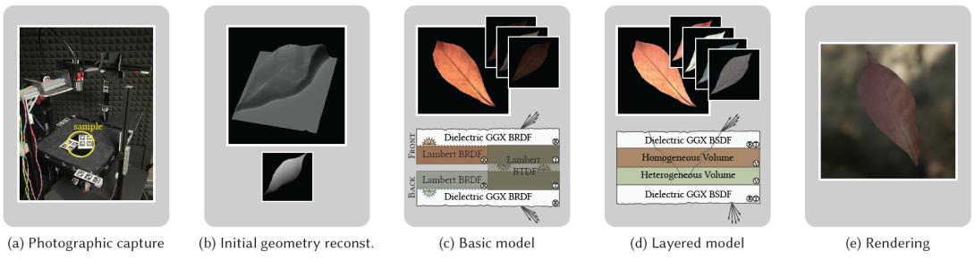 The joint reconstruction of shape and appearance for translucent objects from real-world data poses a challenge in computer graphics, especially when dealing with complex layered materials like leaves or paper. The traditional assumption of diffuse transmittance falls short, and more accurate Monte-Carlo-based models are often needed to reproduce their appearance. To accurately capture the translucent appearance, an acquisition system needs to be carefully designed. Additionally, there are three challenges for inverse rendering: First, a large number of unknown parameters make the optimization problem difficult. Second, the Monte Carlo (MC) renderer introduces noise, which the optimization is sensitive to, especially when dealing with complex material models such as rough dielectric surfaces and highly scattering participating media. Last, MC estimators using long light paths (up to 32 bounces in our case) create a large computation graph in memory, making the gradient back-propagation costly. To address those challenges, we present an affordable and fast acquisition pipeline that can capture spatially varying reflectance and transmission at the same time, using a two-phase optimization. We first initialize the geometry with the traditional vision method and then fit a simple and fast appearance model. Thereafter, we use the estimated parameters to initialize a second optimization using a more expensive volumetric model, which converges faster and more reliably from this favorable starting position. We also introduce a way to analyze each parameter’s sensitivity to the noise in the measurements, which can be used in optimally selecting useful measurements for optimization. Furthermore, instead of iterating on the camera system, we also introduce a weighted L2 loss as an alternative for selecting useful pixels from existing measurements.