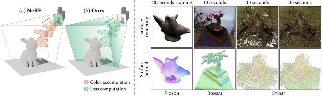 We present a fast and simple technique to convert images into a radiance surface-based scene representation. Building on existing radiance volume reconstruction algorithms, we introduce a subtle yet impactful modification of the loss function requiring changes to only a few lines of code: instead of integrating the radiance field along rays and supervising the resulting images, we project the training images into the scene to directly supervise the spatio-directional radiance field. The primary outcome of this change is the complete removal of alpha blending and ray marching from the image formation model, instead moving these steps into the loss computation. In addition to promoting convergence to surfaces, this formulation assigns explicit semantic meaning to 2D subsets of the radiance field, turning them into well-defined radiance surfaces. We finally extract a level set from this representation, which results in a high-quality radiance surface model. Our method retains much of the speed and quality of the baseline algorithm. For instance, a suitably modified variant of Instant NGP maintains comparable computational efficiency, while achieving an average PSNR that is only 0.1 dB lower. Most importantly, our method generates explicit surfaces in place of an exponential volume, doing so with a level of simplicity not seen in prior work.