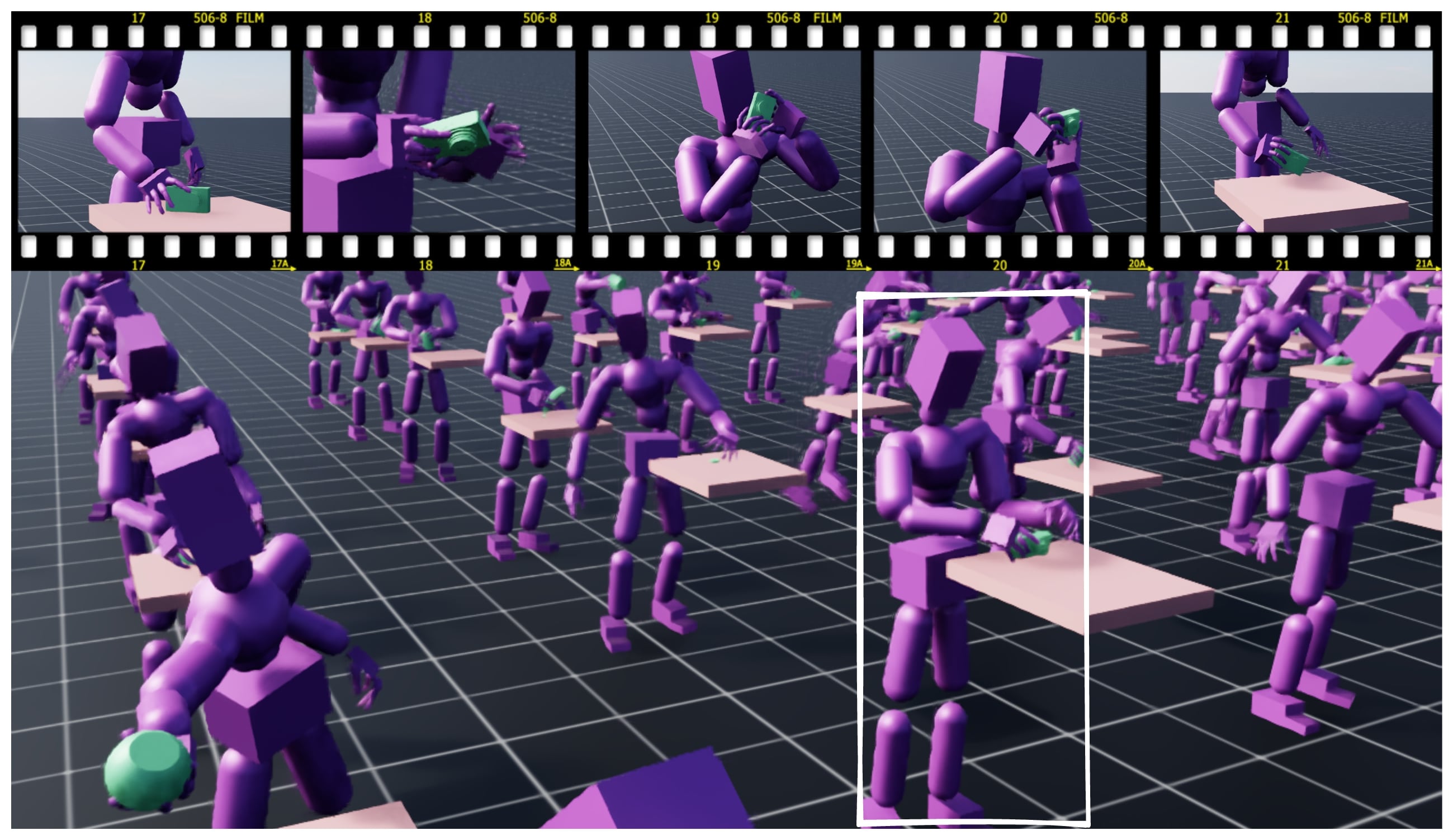 The third application we consider is generative behavior. Here, MaskedManipulator is not provided any constraints, and must generate a full-body motion that is consistent with the object in front of it. constraints.