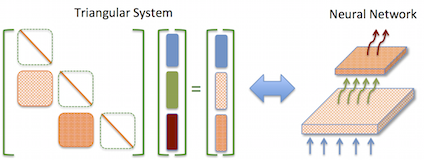 We show that the forward and backward propagation can be formulated as a solution of lower and upper triangular systems of equations. For standard feedforward (FNNs) and recurrent neural networks (RNNs) the triangular systems are always block bi-diagonal, while for a general computation graph (directed acyclic graph) they can have a more complex triangular sparsity pattern. We discuss direct and iterative parallel algorithms that can be used for their solution and interpreted as different ways of performing model parallelism. Also, we show that for FNNs and RNNs with k layers and t time steps the backward propagation can be performed in parallel in O(log k) and O(log k log t) steps, respectively. Finally, we outline the generalization of this technique using Jacobians that potentially allows us to handle arbitrary layers.