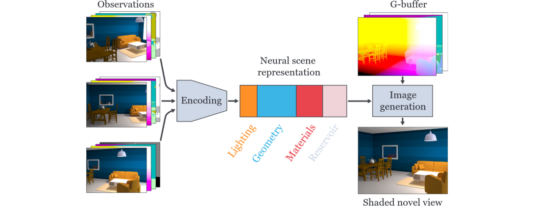 We present a technique for adaptively partitioning neural scene representations. Our method disentangles lighting, material, and geometric information yielding a scene representation that preserves the orthogonality of these components, improves interpretability of the model, and allows compositing new scenes by mixing components of existing ones. The proposed adaptive partitioning respects the uneven entropy of individual components and permits compressing the scene representation to lower its memory footprint and potentially reduce the evaluation cost of the model. Furthermore, the partitioned representation enables an in-depth analysis of existing image generators. We compare the flow of information through individual partitions, and by contrasting it to the impact of additional inputs (G-buffer), we are able to identify the roots of undesired visual artifacts, and propose one possible solution to remedy the poor performance. We also demonstrate the benefits of complementing traditional forward renderers by neural representations and synthesis, e.g. to infer expensive shading effects, and show how these could improve production rendering in the future if developed further.
