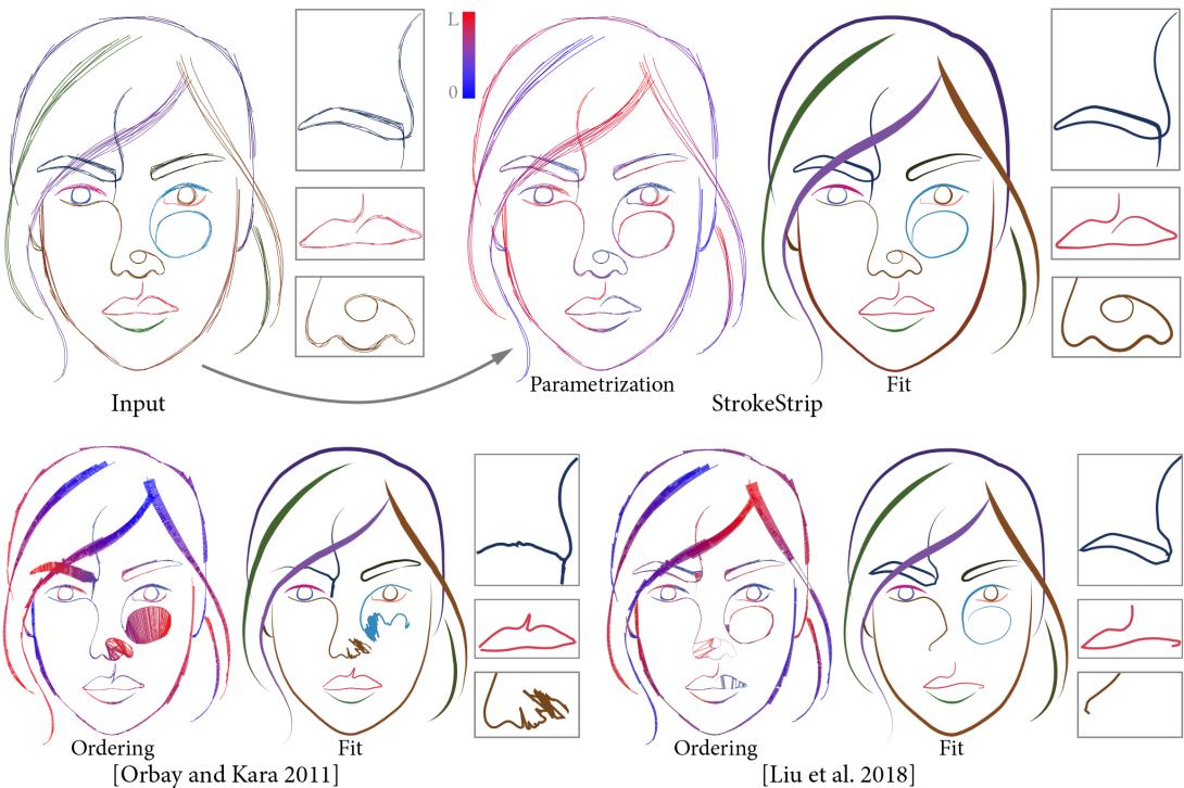 StrokeStrip: Joint Parameterization and Fitting of Stroke Clusters