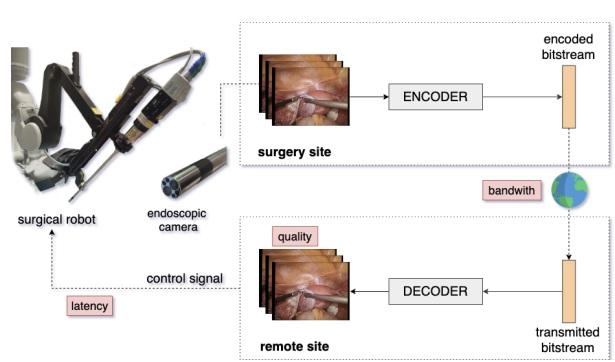 We compare traditional encoding/decoding methods for real time video streaming, like H264/AVC and H265/HEVC, and deep learning based methods, that are expected to deliver higher video quality at lower bandwidth in the next future. We concentrate our attention on the case of endoscopic videos, where streaming is part of a closed-loop system and robot-assisted minimally invasive surgery is performed on a patient in real time. Beyond low bandwidth and high video quality, such application also demands for low latency to guarantee the stability of the closed loop system and thus high safety standards. We analyze pros and cons of the deep learning approach in this domain, highlighting areas where deep neural networks overcome the traditional approach, and those that require further development. Our observations may be used as guidelines for the future research activity on video streaming in the surgical domain as well as in areas with similar requirements.