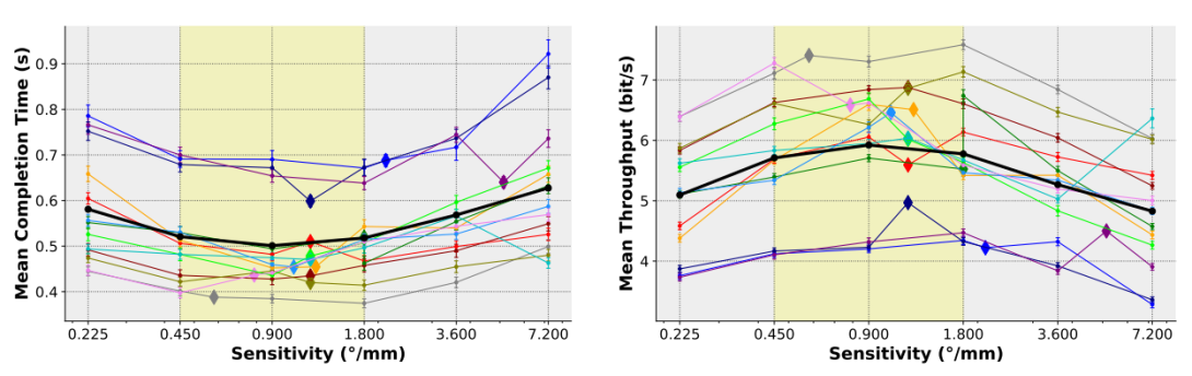 Despite billions of hours of play and copious discussion online, mouse sensitivity recommendations for first-person targeting tasks vary by a factor of 10x or more and remain an active topic of debate in both competitive and recreational gaming communities.Inspired by previous academic literature in pointer-based gain optimization, we conduct the first user study of mouse sensitivity in first person targeting tasks, reporting a statistically significant range of optimal values in both task completion time and throughput. Due to inherent incompatibility (i.e., lack of convert-ability) between sensitivity metrics adopted for prior pointer-based gain literature and those describing first-person targeting, we provide the first analytically demonstrated, statistically significant optimal sensitivity range useful for first-person camera controls. Furthermore, we demonstrate that this optimal sensitivity range arises (at least in part) from a speed-precision trade-off impacted by spatial task difficulty, similar to results reported in pointer-based sensitivity literature previously.