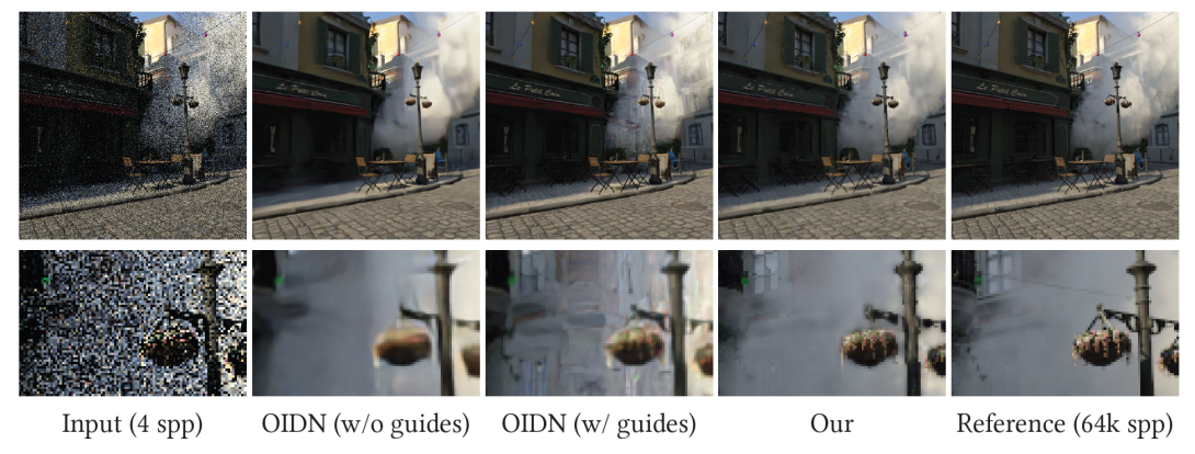 Denoisers designed for surface geometry rely on noise-free feature guides for high quality results. However, these guides are not readily available for volumes. Our method enables combined volume and surface denoising in real time from low sample count (4 spp) renderings. The rendered image is decomposed into volume and surface layers, leveraging spatio-temporal neural denoisers for both components. The individual signals are composited using learned weights and denoised transmittance. Our architecture outperforms current denoisers in scenes containing both surfaces and volumes, and produces temporally stable results at interactive rates.