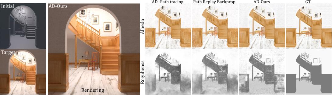 Inverse rendering methods that account for global illumination are becoming more popular, but current methods require evaluating and automatically differentiating millions of path integrals by tracing multiple light bounces, which remains expensive and prone to noise. Instead, this paper proposes a radiometric prior as a simple alternative to building complete path integrals in a traditional differentiable path tracer, while still correctly accounting for global illumination. Inspired by the Neural Radiosity technique, we use a neural network as a radiance function, and we introduce a prior consisting of the norm of the residual of the rendering equation in the inverse rendering loss. We train our radiance network and optimize scene parameters simultaneously using a loss consisting of both a photometric term between renderings and the mutli-view input images, and our radiometric prior (the residual term). This residual term enforces a physical constraint on the optimization that ensures that the radiance field accounts for global illumination. We compare our method to a vanilla differentiable path tracer, and more advanced techniques such as Path Replay Backpropagation. Despite the simplicity of our approach, we can recover scene parameters with comparable and in some cases better quality, at considerably lower computation times.