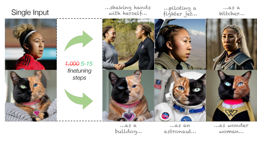 Text-to-image personalization aims to teach a pre-trained diffusion model to reason about novel, user provided concepts, embedding them into new scenes guided by natural language prompts. However, current personalization approaches struggle with lengthy training times, high storage requirements or loss of identity. To overcome these limitations, we propose an encoder-based domain-tuning approach. Our key insight is that by underfitting on a large set of concepts from a given domain, we can improve generalization and create a model that is more amenable to quickly adding novel concepts from the same domain. Specifically, we employ two components: First, an encoder that takes as an input a single image of a target concept from a given domain, e.g., a specific face, and learns to map it into a word-embedding representing the concept. Second, a set of regularized weight-offsets for the text-to-image model that learn how to effectively injest additional concepts. Together, these components are used to guide the learning of unseen concepts, allowing us to personalize a model using only a single image and as few as 5 training steps --- accelerating personalization from dozens of minutes to seconds, while preserving quality.
