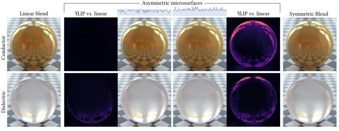 We propose new methods for combining NDFs in microfacet theory, enabling a wider range of surface statistics. The new BSDFs that follow allow for independent adjustment of appearance at grazing angles, and can’t be represented by linear blends of single-NDF BSDFs. We derive importance sampling for a symmetric operator that blends NDFs uniformly, and introduce a new asymmetric operator that supports NDF variation with elevation. We also extend Smith’s model to support piecewise-constant NDF and material variations with