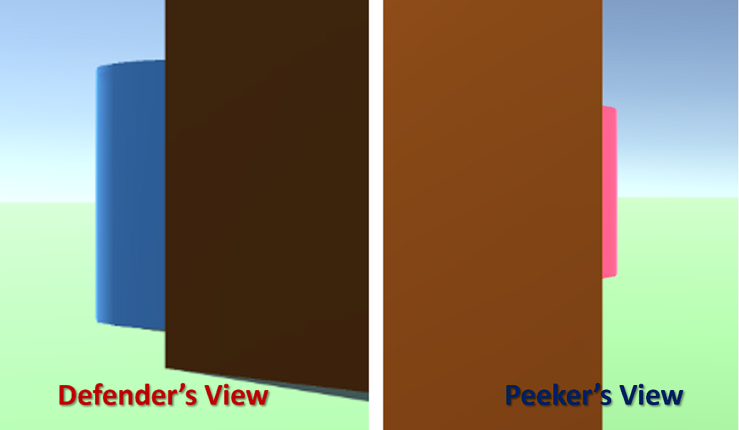 In first-person shooter (FPS) games, the peeker's advantage is the edge the moving peeker gets when battling a stationary defender at a corner due to network latency. However, confirmation of (the size of) this advantage based on network latency and the distance from the corner has not been studied. This paper assesses the peeker's advantage via two user studies both using an open-source FPS game extended to support two-player networking and a custom map. Users play as both peeker and defender with 3 different corner distances and 3 different network latencies. Analysis of hits, wins, and time-to-damage shows that the advantage for the peeker is impacted more by the defender's latency than the peeker's latency and is lowest when the peeker is nearest the corner. The user study with a tournament setting had quicker and more competitive matches resulting in more combat encounters and closer games than did the traditional user study.