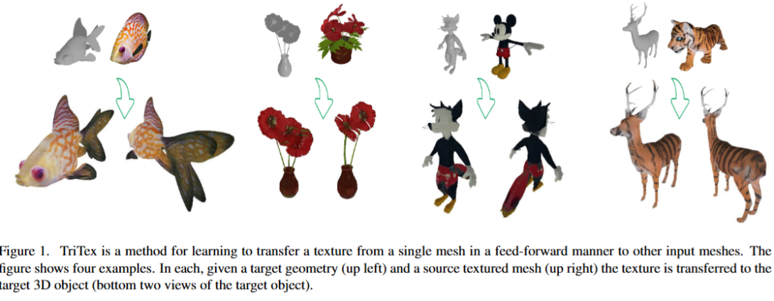 As 3D content creation continues to grow, transferring semantic textures between 3D meshes remains a significant challenge in computer graphics. While recent methods leverage text-to-image diffusion models for texturing, they often struggle to preserve the appearance of the source texture during texture transfer. We present TRITEX, a novel approach that learns a volumetric texture field from a single textured mesh by mapping semantic features to surface colors. Using an efficient triplane-based architecture, our method enables semantic-aware texture transfer to a novel target mesh. Despite training on just one example, it generalizes effectively to diverse shapes within the same category. Extensive evaluation on our newly created benchmark dataset shows that TRITEX achieves superior texture transfer quality and fast inference times compared to existing methods. Our approach advances single-example texture transfer, providing a practical solution for maintaining visual coherence across related 3D models in applications like game development and simulation.