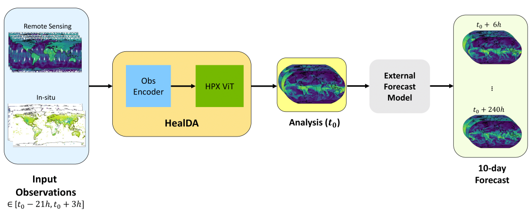 Machine-learning (ML) weather models now rival leading numerical weather prediction (NWP) systems in medium-range skill. However, almost all still rely on NWP data assimilation (DA) to provide initial conditions, tying them to expensive infrastructure and limiting the practical speed and accuracy gains of ML. More recently, ML-based DA systems have been proposed, which are often trained and evaluated end-to-end with a forecast model, making it difficult to assess the quality of their analysis fields. We introduce HealDA, a global ML-based DA system that maps a short window of satellite and conventional observations directly to a 1° atmospheric state on the Hierarchical Equal Area isoLatitude Pixelation (HEALPix) grid, using a smaller sensor suite than operational NWP and no background forecast at runtime. We treat HealDA strictly as a DA module: its analyses are used to initialize off-the-shelf ML forecast models without any fine-tuning of either. For a variety of off-the-shelf ML forecast models, including FourCastNet3 (FCN3), Aurora, and FengWu, HealDA-initialized forecasts lose less than one day of effective lead time when scored against ERA5. HealDA-initialized FCN3 ensembles similarly trail those of the ECMWF Integrated Forecasting System Ensemble (IFS ENS) system by less than 24~h. We find that forecast error growth in these models is largely unchanged from HealDA initialization, and the skill gap primarily arises from the larger initial-condition error of the HealDA analysis. Spectral analysis reveals that this stems from overfitting to the large scales and upper-tropospheric fields. We also demonstrate that small changes in the verification setup can shift apparent skill by 12--24~h, underscoring the need for consistent scoring. Taken together, these results clarify the current performance of ML-based DA systems and show that a relatively simple, background-free network can already provide initial conditions that are usable by state-of-the-art ML forecast models with only modest loss in medium-range skill.
