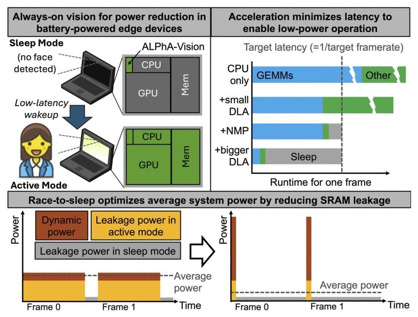 ALPhA-Vision is an always-on low-power subsystem for DNN-inference-based vision tasks in edge SoCs. Flexible and programmable, the subsystem supports CNN and ViT inference and employs hardware/software co-design to enable fully end-to-end execution with no external memory accesses. Fine-grained power management features to mitigate leakage enable the subsystem to perform face detection with 787µs latency and 99.3% detection accuracy with 4.6 mW average power at 60fps.