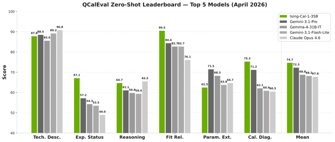 Quantum computing calibration depends on interpreting experimental data, and calibration plots provide the most universal human-readable representation for this task, yet no systematic evaluation exists of how well vision-language models (VLMs) interpret them. We introduce QCalEval, the first VLM benchmark for quantum calibration plots: 243 samples across 87 scenario types from 22 experiment families, spanning superconducting qubits and neutral atoms, evaluated on six question types in both zero-shot and in-context learning settings. The best general-purpose zero-shot model reaches a mean score of 72.3, and many open-weight models degrade under multi-image in-context learning, whereas frontier closed models improve substantially. A supervised fine-tuning ablation at the 9-billion-parameter scale shows that supervision format is critical, zero-shot-formatted and in-context-learning-formatted fine-tuning improve different capabilities, and no single recipe improves open-ended analysis. As a reference case study, we release NVIDIA Ising Calibration 1, an open-weight model based on Qwen3.5-35B-A3B that reaches 74.7 zero-shot average score.